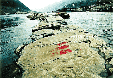 景点简介: 是云阳县城前长江江心的一处长200余米,宽10多米的砂岩石梁。在三峡大坝修建前,每年冬春枯水季节露出水面,一般年份中部潜于江心,形成东西两岛,水位十分低下时,两岛成一片。宛如一条白龙潜于长江,故名龙脊石,又称龙潜石。这里自古为春游胜地,每年春上,在龙脊石上宴游赋诗,占卜丰歉,十分热闹。因此,龙脊石上古诗文题刻极为丰富,有自北宋元?v三年(1088年)以来的各代石刻题记170余处,其中含53个枯水年份的68段水文石刻题记。石刻大字如斗,小字如粟,篆、隶、楷、草,样样俱全。